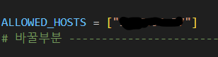* config > settings.py 파일에서 다음 그림과 같이 자신의 고정 ip 입력.
