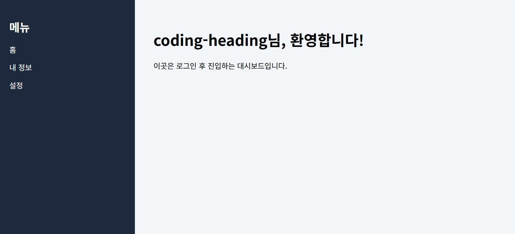 <p>이곳은 로그인 후 진입하는 대시보드입니다.</p>