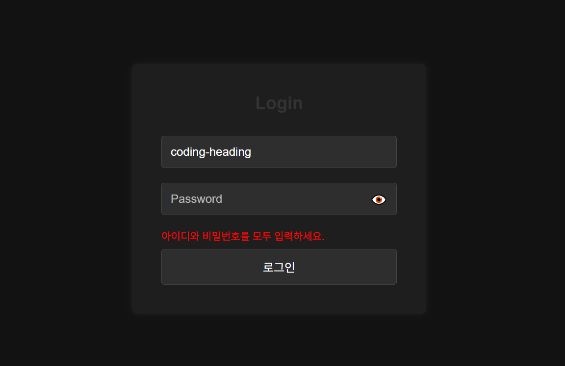 showError("아이디와 비밀번호를 모두 입력하세요.");