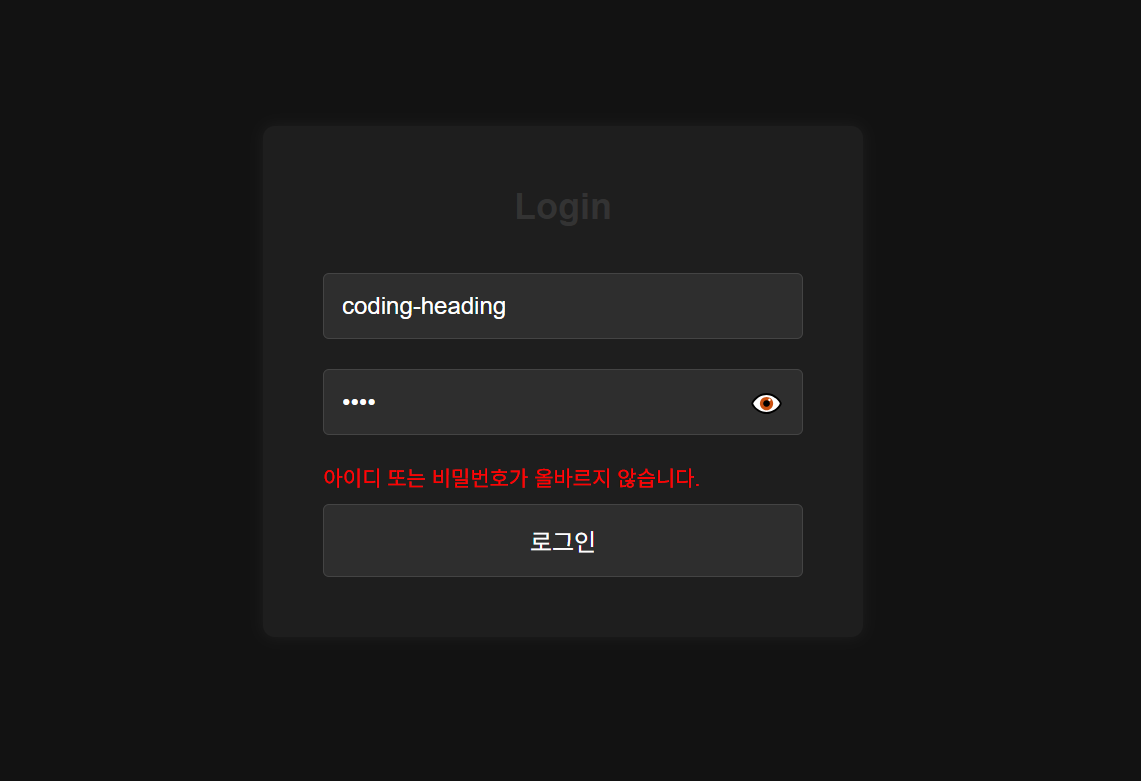 showError("아이디 또는 비밀번호가 올바르지 않습니다.");