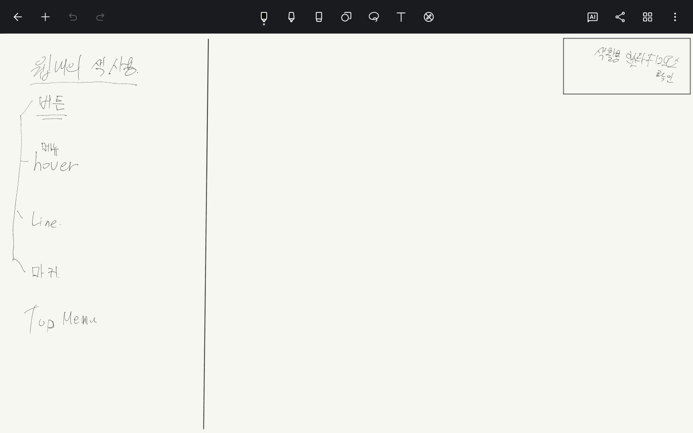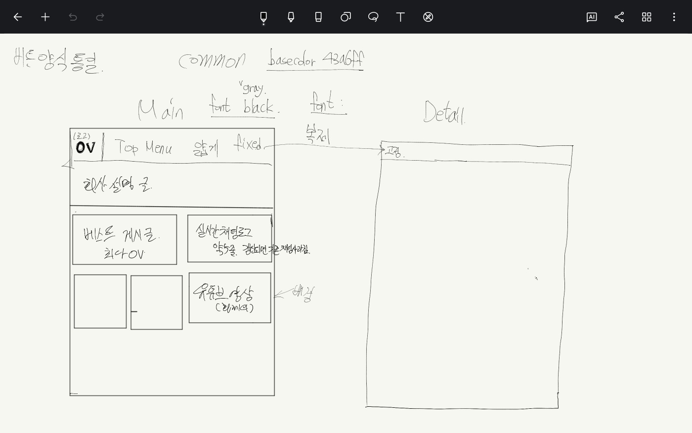 그 후 색감에 통일감을 주기 위해 색조합을 선정했으며, 메인 화면과 각각의 화면의 대략적인 레이아웃까지 구상했다.