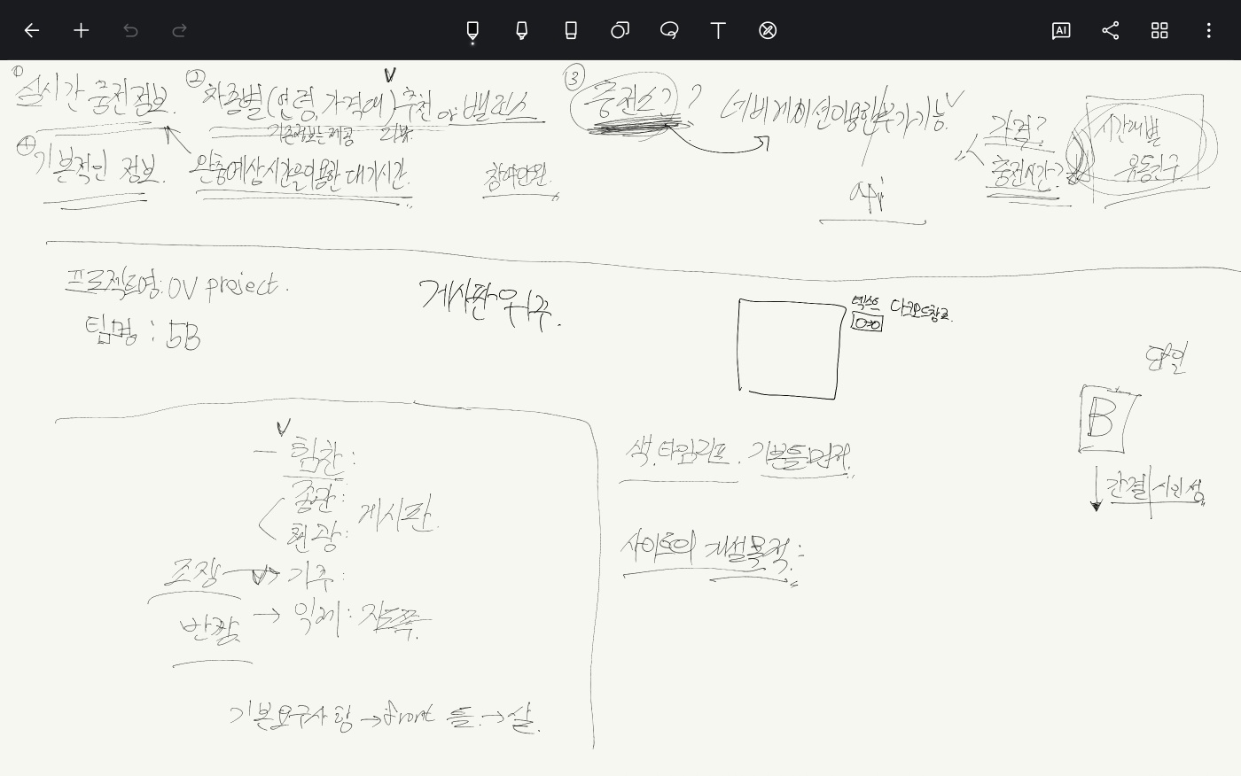 먼저 컨셉 선정부터 시작해서 최초 전기차 중전소를 알려주는 기능을 메인으로 부가적인 기능을 추가하려 했으나, 평범함 보다는 사람들이 직접 참여하고 소통할 수 있도록 하는 커뮤니티 성격을 강하게 가져가며 전기차 충전소 안내는 부가적인 기능으로 조금 변경되었다.