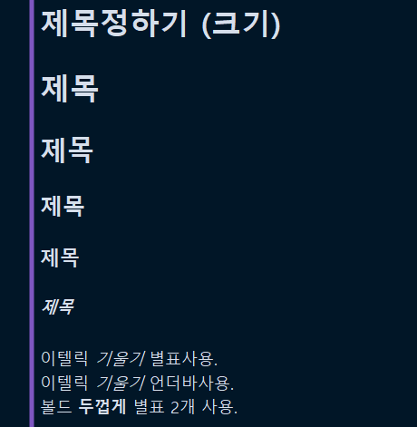 이텔릭 *기울기* 별표사용.