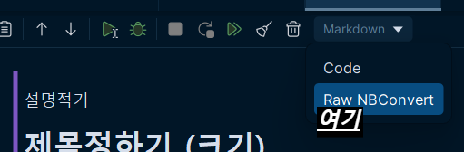 마크다운을 사용하기 위해서는 마크다운을 선택해 줘야 한다.