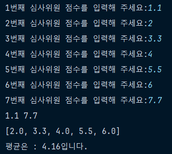 7멍의 심판들의 점수를 입력받아 리스트에 저장