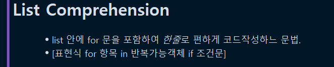 python 기초 9 (리스트 내 for 문/ List Comprehension) 본문