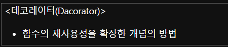 # - 데코레이터 호출은 "@"를 사용함
