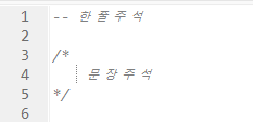 - 한 줄 주석 : --