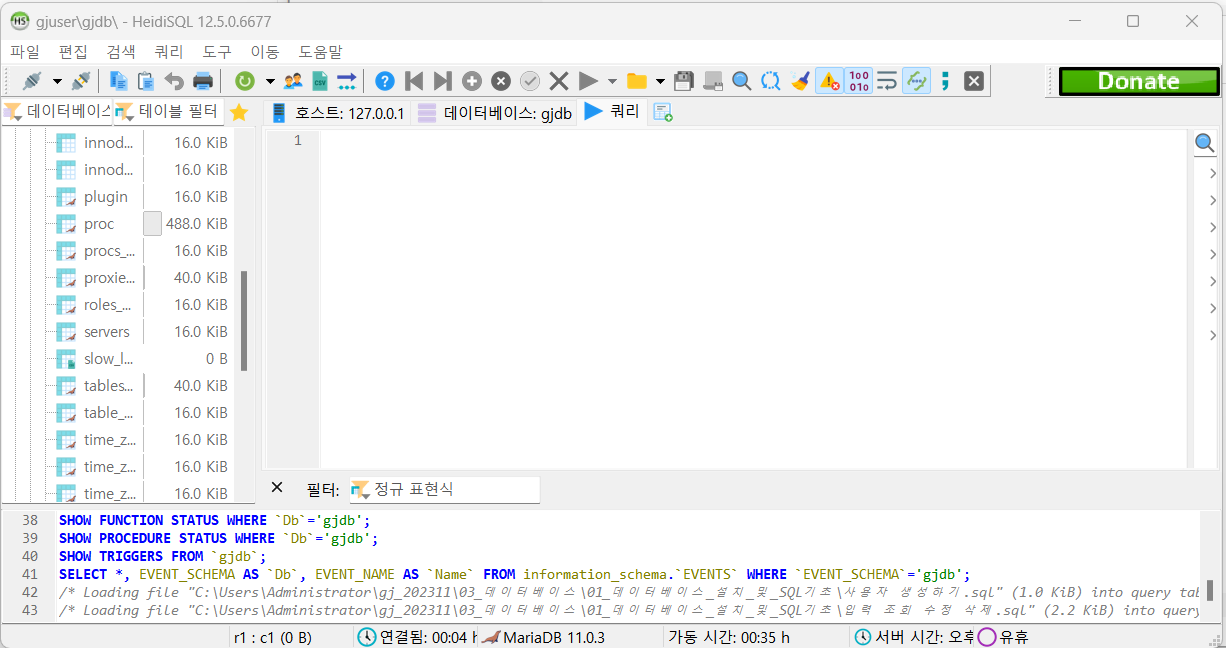 MariaDB에서 쿼리탭에서 명령어를 작성하게 된다.