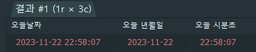 SELECT NOW() AS '오늘날짜', CURDATE() AS '오늘 년월일', CURTIME() AS '오늘 시분초';