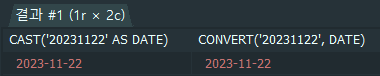 SELECT CAST('20231122' AS DATE), CONVERT('20231122', DATE);