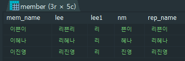 REPLACE(SUBSTRING(mem_name,1,1), '이','리') AS lee1,