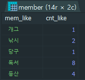 SELECT mem_like, COUNT(nvl(mem_like,0)) AS cnt_like