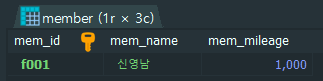 - 회원의 마일리지 값을 1000점으로 바꾸기