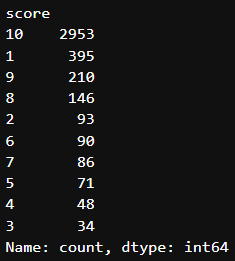- 부정 : 평점이 4 이하인 경우로 , 부정값은 => 0
