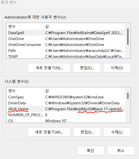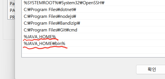 JAVA_HOME의 경로는 JDK설치 폴더까지