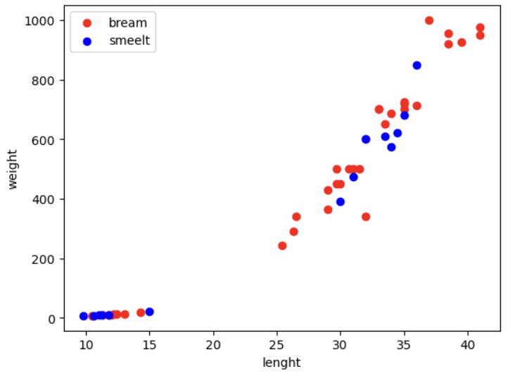 fish_data = [ [l,w]for l,w in zip(fish_length, fish_weight)]