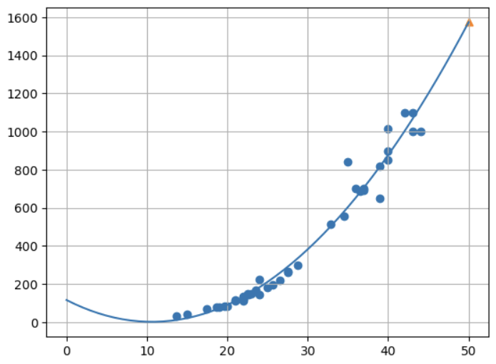 - 독립변수는 2개가 사용됨 : x와 x^2 값