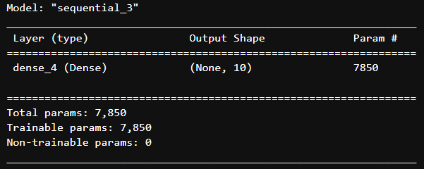 - output shape() : 출력 크기(10개 출력)