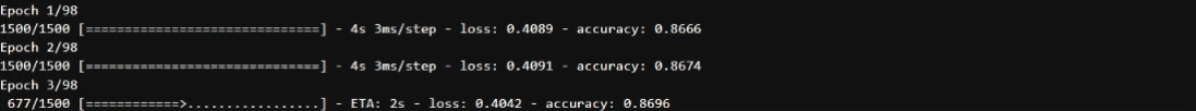 375/375 [==============================] - 0s 722us/step - loss: 0.5559 - accuracy: 0.8462